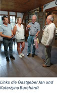 Den Abschluss des Tages bildete der Besuch bei Freunden in Mielenz/Miłoradz. Der Bio-Hof von Jan und Katarzyna Burchardt ist Sitz des Vereins Dawna Wozownia und da sind Gäste immer willkommen. Ein Bäcker machte eine Vorführung, wie man Hörnchen backt und