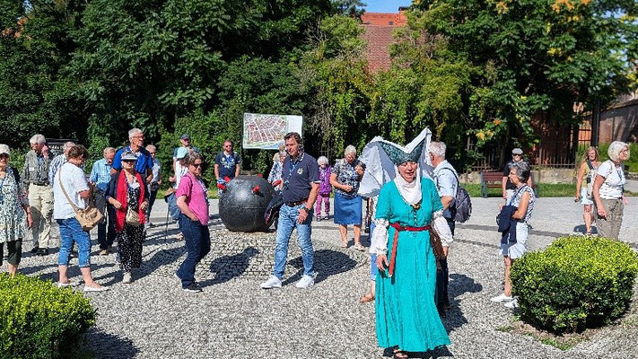 Am nächsten Tag, dem 14. Juli erwartete uns eine Stadtführerin in mittelalterlicher Tracht, um uns die