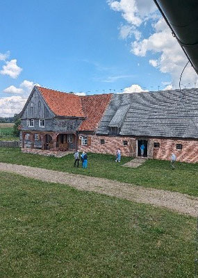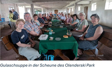 aufgeteilten Reiseteilnehmer zu sehen und zu hören. Zum Abschluss ist in der Scheune für uns alle der Tisch gedeckt. Es gibt eine leckere Gulaschsuppe.