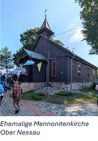 Wir verlassen am 15. Juli unser komfortables Hotel Bulwar in Thorn und fahren in die Kirche der früheren Mennonitengemeinde Ober Nessau/Wielka Nieszawk, um dort unsere Morgenandacht zu halten. Empfangen werden wir von Frau Anna Maślak, der Leiterin des Olenderski Parks in Wielka Nieszawka. Sie berichtet uns über die Geschichte der Kirche und Gemeinde, die schon im 16. Jahrhundert gegründet wurde. Die erste Kirche wurde 1778 gebaut, sie brannte 1889 infolge eines Blitzschlages ab. 1890 wurde eine neue Kirche mit einem kleinen Turm in Holzbauweise errichtet. Sie wurde in den letzten Jahren restauriert und wird heute von einer Katholischen Gemeinde als Gotteshaus genutzt.