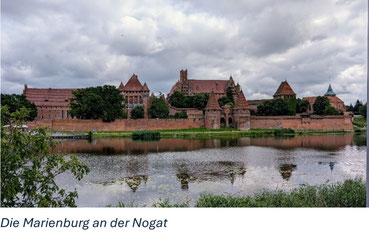 Ein Besuch der Marienburg wird auf jeder Reise erwartet. So fahren wir am 17. Juli zur Besichtigung der größten Backsteinburg der Welt. Im Zweiten Weltkrieg wurde sie zur Festung erklärt, das Vordringen der Roten Armee sollte verzögert werden, um möglichst viele Flüchtlinge in den Westen bringen zu können. Die Burg wurde durch die Kriegshandlungen weitgehend zerstört. Aber bei jeder Besichtigung sind weitere Teile der Burg neu aufgebaut. In den letzten Jahren wurde die Marienkirche im Hochschloss restauriert. Die im Krieg eingestürzten gotischen Deckengewölbe wurden wieder hergestellt. Auch die 8 Meter hohe, mit farbigem venezianischem Glasmosaik überzogene Madonnenfigur an der Außenwand des Chorschlusses wurde im Krieg zerstört. Nun wiederhergestellt ist sie ein Blickfang vom Osten der Burganlage.