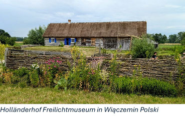 Ein bedeutender Teil unserer Reisegruppe hatte familiäre Wurzeln in diesem Gebiet. Zunächst ging es in das Freilichtmuseum Skansen Osadnictwa Nadwiślańskiego in Wiączemin Polski. Neben einer früheren Evangelischen Kirche, in der eine Ausstellung die Geschichte der Holländer/ Mennoniten zeigt, sind mehrere Holländer-Höfe auf typischen Warften mit entsprechender historischer Ausstattung und eine traditionelle Schule zu besichtigen.